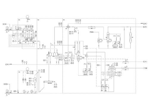 噴霧干燥系統(tǒng)+回轉(zhuǎn)焙燒爐系統(tǒng)+冷卻輸送系統(tǒng)